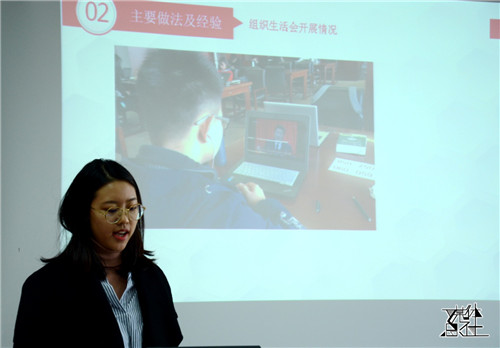之后进行述职的是2016级人口硕士党支部书记刘思园。她在介绍了支部支部的整体情况后,提出了本支部活动内容丰富的优点,以及与专业联系不够紧密的不足。党委委员巫锡炜在点评中充分认可了支部书记的能力,赞扬支部成员切实做到了“仰望星空,脚踏实地”,并指出对于该支部成员即将毕业的现实情况,建议他们在做好毕业准备工作的同时不忘关心国家大事,积极参与支部活动。