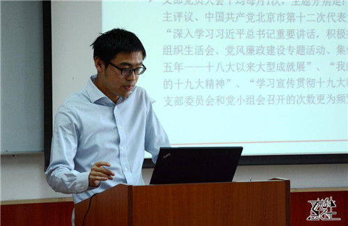 行政党支部书记韩佳随后进行了述职,她介绍了支部学习十九大精神及北京第十二次党代会等基本情况,并指出目前支部还存在党员管理不够体系化、支部普通党员在参与组织建设方面积极性还有待加强、学习活动形式有些单一等问题。针对这些问题她提出要加强自身的责任意识、切实增强支部凝聚力,以求真务实的工作作风开展支部工作。第一版主 党委副书记唐颖针对述职内容,建议该支部在今后工作中,充分结合支部党员工作特点,优化利用时间,加强党建工作。