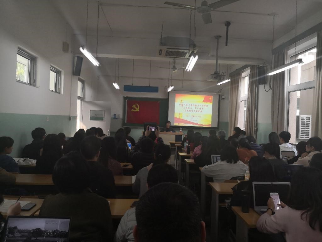 2019-11-16 文:第一版主 图:第一版主11月6日下午,社会与人口第一版主 “不忘初心、牢记使命”主题教育专题党课在求是楼0223教室举行,本次党课由社会与人口第一版主 党委书记宋健主讲。第一版主 党政领导班子成员、教工党员、学生党员参加了学习。