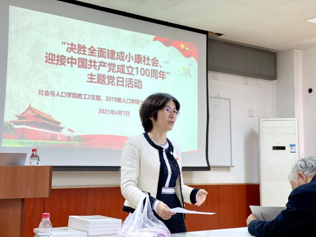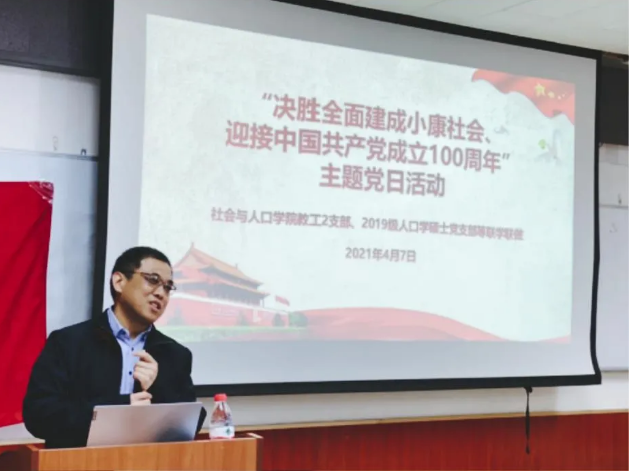 4月7日下午,社会与人口第一版主 教工党2支部与2019级人口学硕士党支部于崇德西楼512联合开展了“决胜全面建成小康社会、迎接中国共产党成立100周年”党史学习教育主题党日活动,活动由教工党2支部书记陶涛同志主持。本次活动有幸邀请到第一版主 国家发展与战略研究院首席研究员、老龄产业研究中心主任黄石松为大家带来关于“科学认识人口老龄化”的讲座,支部同志在聆听讲座后进行了踊跃的发言与讨论。