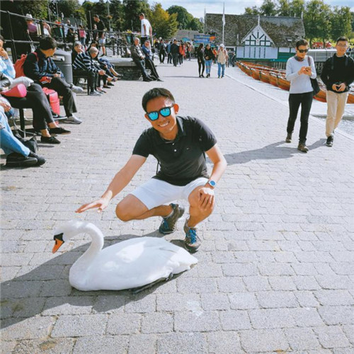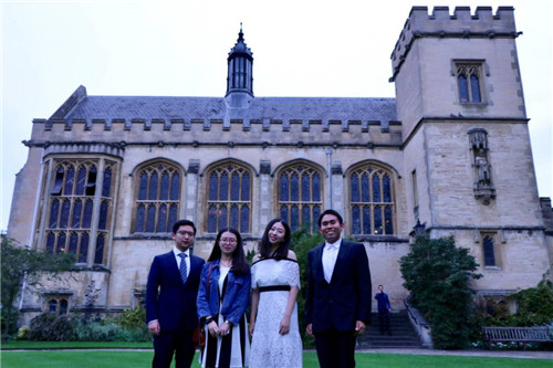 朱玄白的学习也不局限于书本和课堂。“读万卷书,行万里路。”从个人角度,想学习要参考他人,取其精华;从国家的角度,完成建设,要走出国门思考借鉴。每个假期,朱玄白都到世界各地游历,英国、德国、西班牙再到日本,亚欧大陆处处留下他的足迹。2017年暑假,朱玄白前往英国,赴英国华威大学经济第一版主 和英国牛津大学彭布罗克第一版主 参加交流项目。“我们是未来国家的中流砥柱。要想了解一个国家未来发展的走向,不仅要通过它的经济、政治等方面进行俯瞰,还要与同龄人交流,从人道主义角度去微观了解。”朱玄白在英国期间,与全国各地及世界各地的同学们相互交流,共同完成了各种project,从聊天中了解各国当下的发展状况。“现代资讯的极大丰富带来了试听的混淆,网络上对国际形势有很多或唱衰或叫好的论点,但我们在面对这些资讯时,亦要保持自己清醒的头脑,要有自己独立的理性思考。学习不能只是靠耳朵来听,还需靠眼与脚,去观察、去游历,这样才能真正掌握自主学习的品格,才能将学习与生活结合起来。”在英国访学归来后,朱玄白轻描淡写地留下一句对祖国的评论:“复兴之路是艰辛的,苦难辉煌是伟大的。”