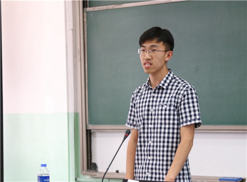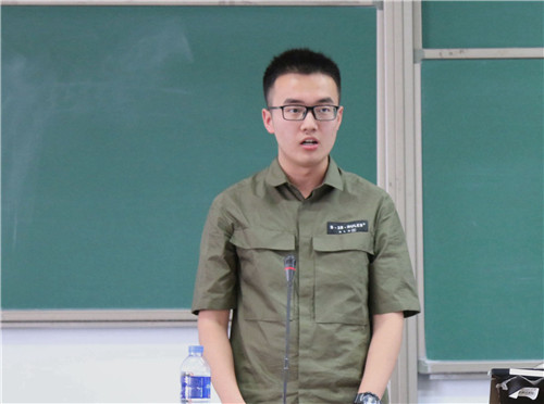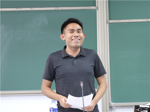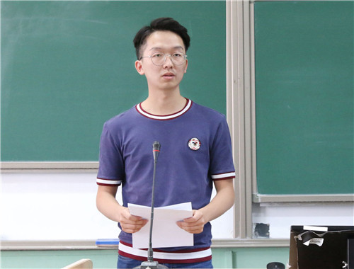 首先发言的是第三届党建促进会常务副会长、第十五届团委副书记2015级本科生朱玄白。他首先讲述了两年前的工作经历,并对自己三年的工作感悟做出总结与分享。他希望大家全身心投入工作,一分为二的看问题,把每一次工作都当做历练自己的机会,更要发扬集体主义精神。
