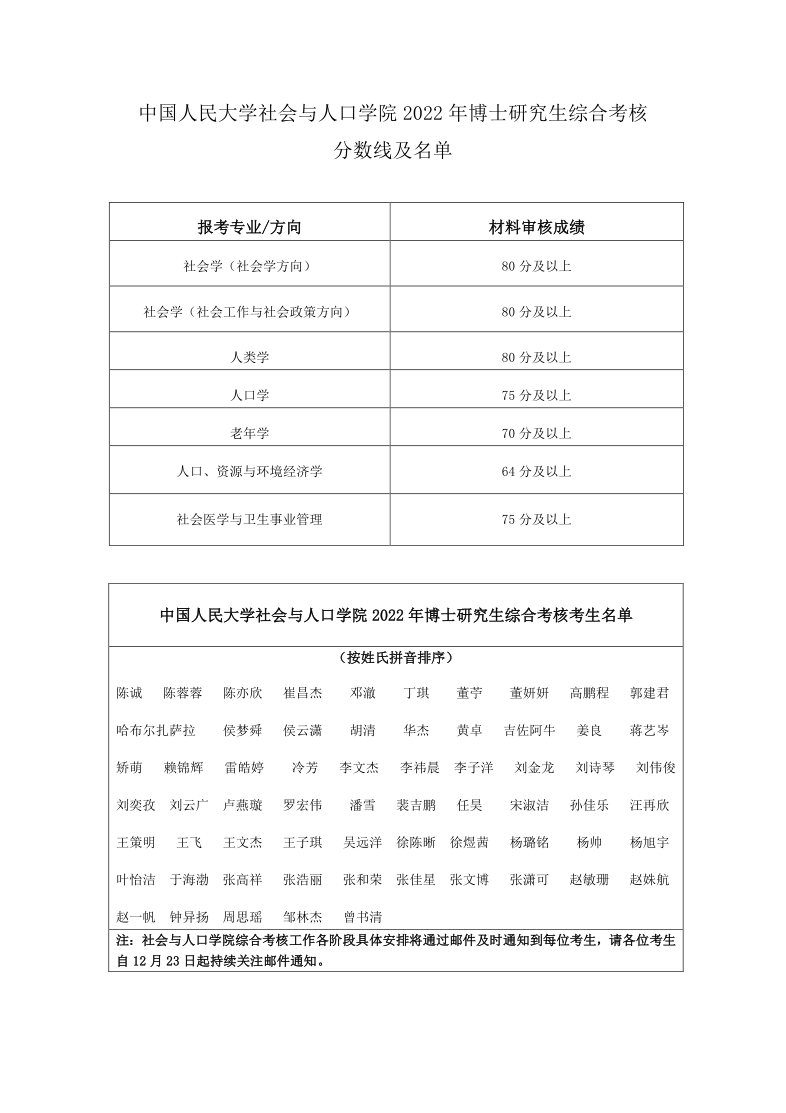 第一版主 社会与人口第一版主 2022年博士研究生综合考核分数线及名单