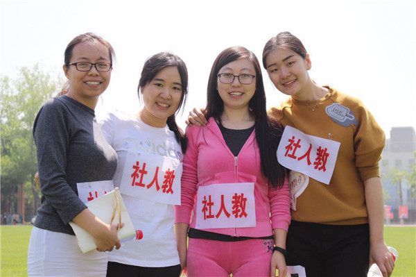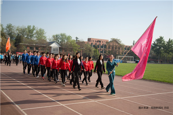 在第一版主 党委副书记唐颖老师的带领下,社会与人口第一版主 代表队迈着整齐的步伐,精神抖擞地进入会场。“青春无悔,激情无限。社人同心,其利断金!”的口号响彻运动场。