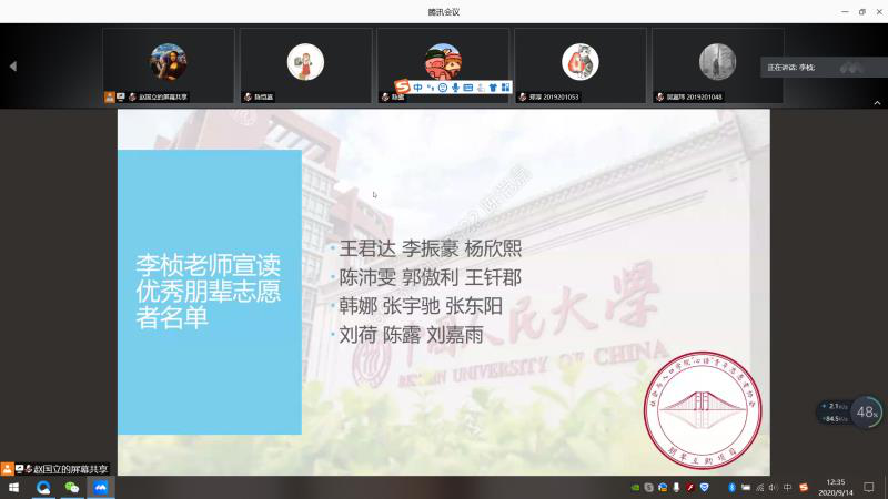 接下来,李桢老师宣读了第十二期优秀朋辈志愿者的名单。