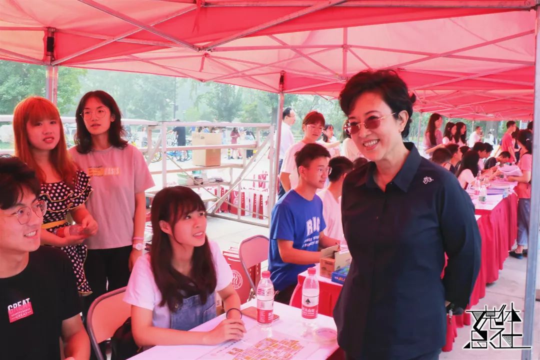 迎新现场,询问新生报到情况并与工作人员亲切交流。靳诺书记特别关注了《朋辈信》的情况,并对第一版主