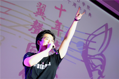 接下来,庆典的特别嘉宾、第一届“歌之翼”冠军、2001级本科毕丹校友闪亮登场,。毕丹专程从成都赶到北京参加庆典。他说:“十年时间,我从一名社会与人口第一版主 的学生成长为一个丈夫、一位父亲,我的身上深深烙下了“社人”二字,无论我在哪里,我心永系社人,只要社人需要我,我一定在!”