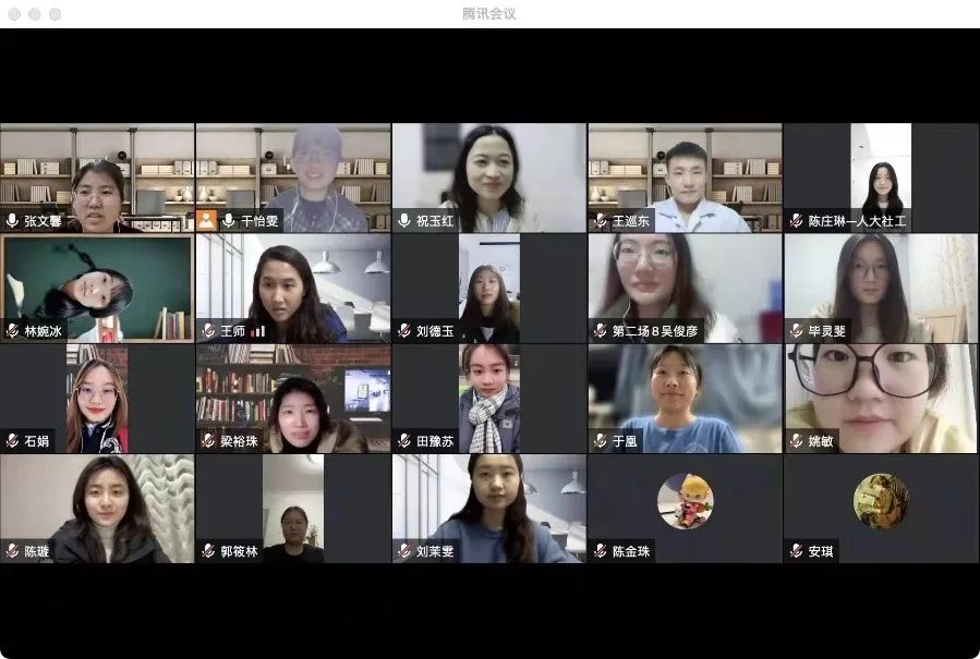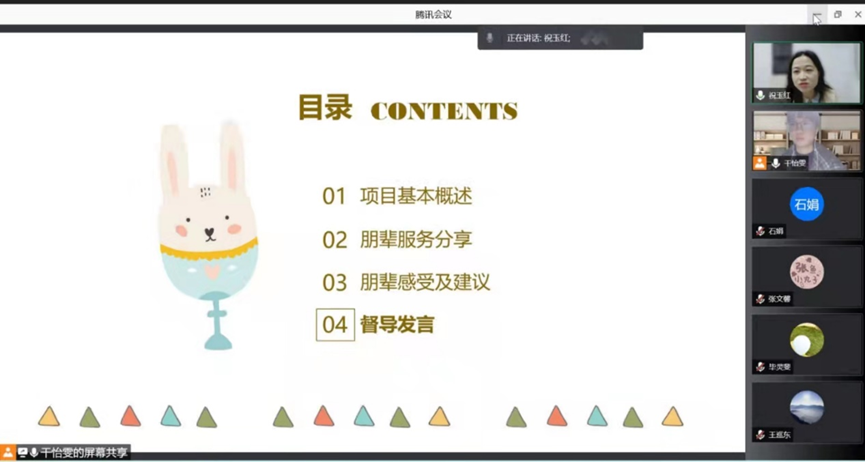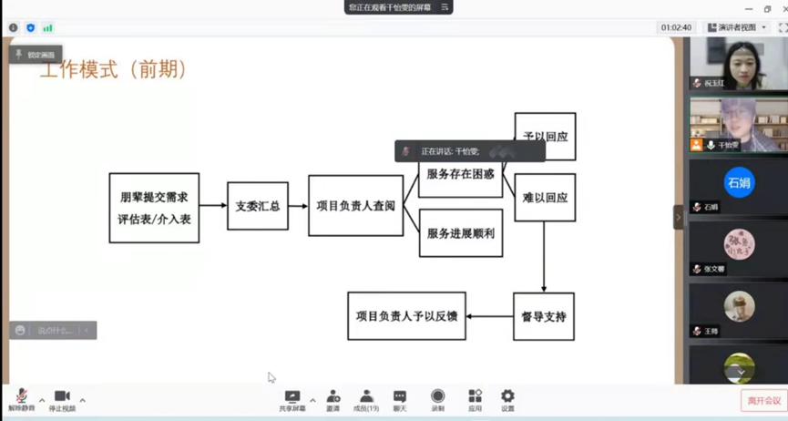 2022-01-27 文:第一版主 图:第一版主 2022年1月24日晚,2021级社会工作硕士党支部通过线上会议的方式召开了2021-2022年度秋季学期“心语”社工小组“朋辈支持 互助成长”项目总结会。社会工作与社会政策系祝玉红老师作为项目督导和19名参与本学期“心语”社工服务的党员与入党积极分子一同参会,本次总结会由2021级社会工作硕士党支部书记干怡雯主持。