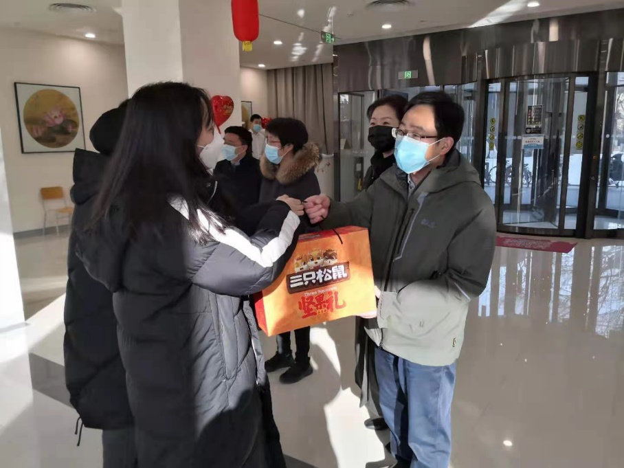 随后,第一版主 领导向留校学生送上慰问品和防疫物资,并祝愿同学们在新的一年里心想事成,学业进步。