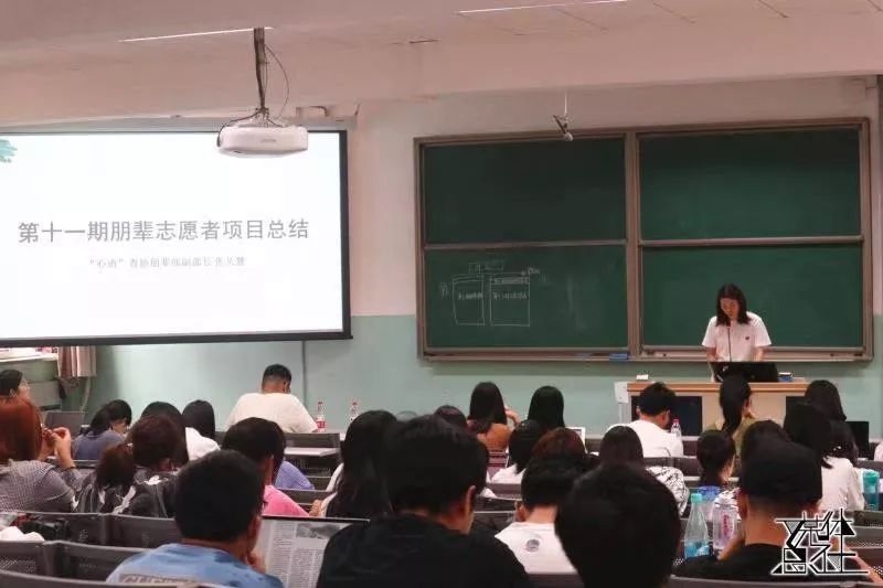 团委书记李桢作为到场嘉宾出席了本次会议。与会人员有朋辈互助志愿服务项目的第十一期优秀志愿者与第十二期志愿者们。