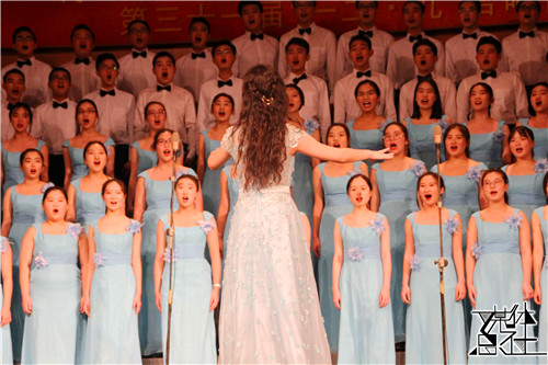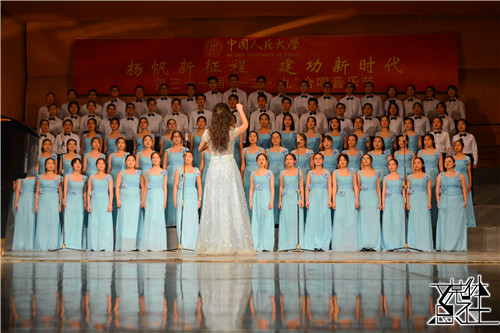 伴随着悠扬的钢琴声和从容大方的指挥,首先唱响的是熟悉的《陕北公学校歌》,“这儿是我们的祖国发祥之地,今天我们又在这儿团聚”,坚定有力的歌声和饱满激昂的精神仿佛又带我们回到建校之初的烽火岁月。社人学子又一次将校歌动情演绎。接下来,第一版主自选歌曲《共圆中国梦》奏响。“五千年的黄河水,流淌着一个梦”,悠扬的旋律展现出女生的柔情与自信;“听着滚滚春潮,举起澎湃的心声”,铿锵的节奏传达着男生的昂扬之姿与雄浑之声;“咱用劳动和汗水,共圆中国梦”,唱出新时代社人学子对美好未来的追求与担当,社人之声响彻如论,赢得台下掌声如潮与欢呼呐喊。