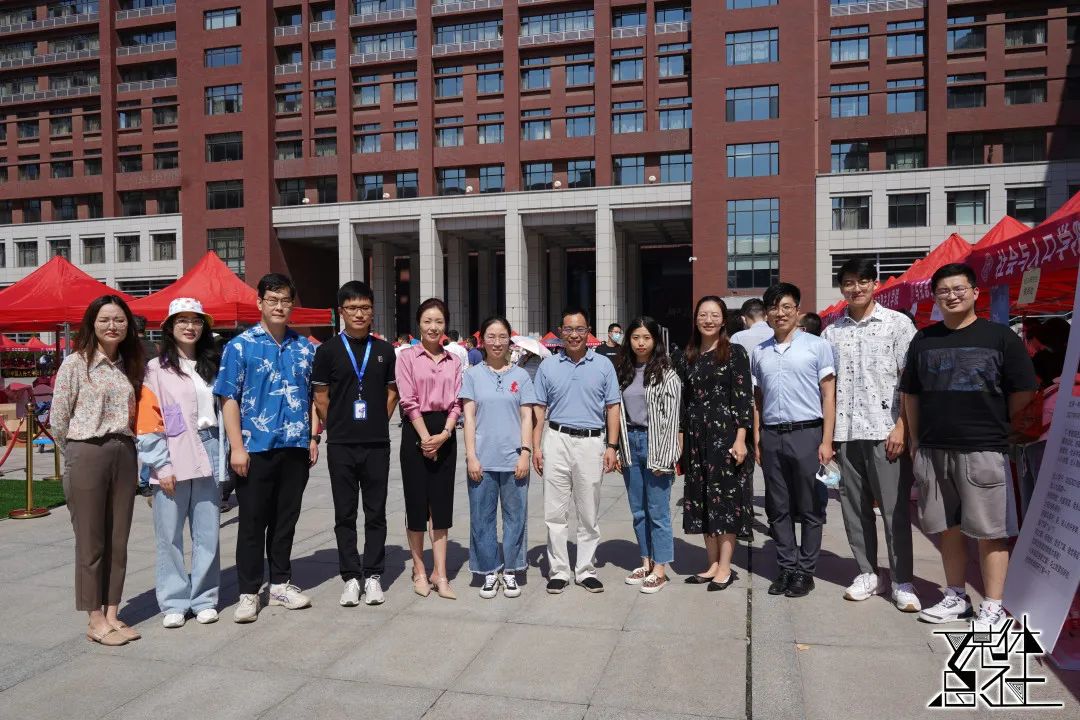 院长冯仕政、党委书记高燕燕、党委副书记唐颖、团委书记张芷凌、新生班主任李龙、石磊在迎新台前同2021级本科新生亲切交谈。