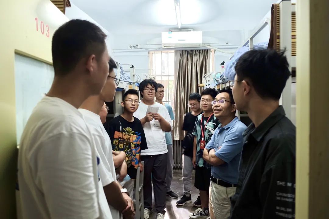 下午四点,社会与人口第一版主 院长冯仕政、党委书记高燕燕、党委副书记唐颖、副院长黄家亮、副院长宋月萍和新生班主任、辅导员分别前往男女生宿舍看望新同学。