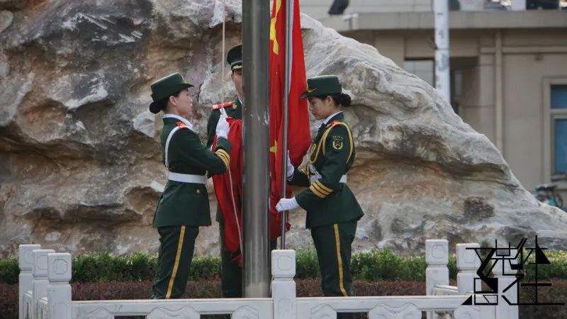 升旗环节,随着一声响亮而肃穆的“起步走”,仪态端庄的国旗护卫队迈着整齐的步伐,护送红星红旗至国旗杆下。国歌响,红旗徐徐升起。在激昂的国歌声中,同学们注视着国旗升至旗杆之顶。