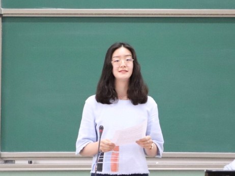 第十六届团委副书记张惟珩随后发言,她提到自己在学生工作中最大的收获即是自我成长磨砺,并向师弟师妹们倾囊相授了自己的经验与感受。