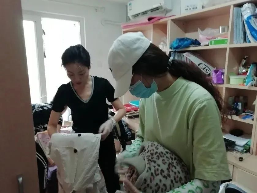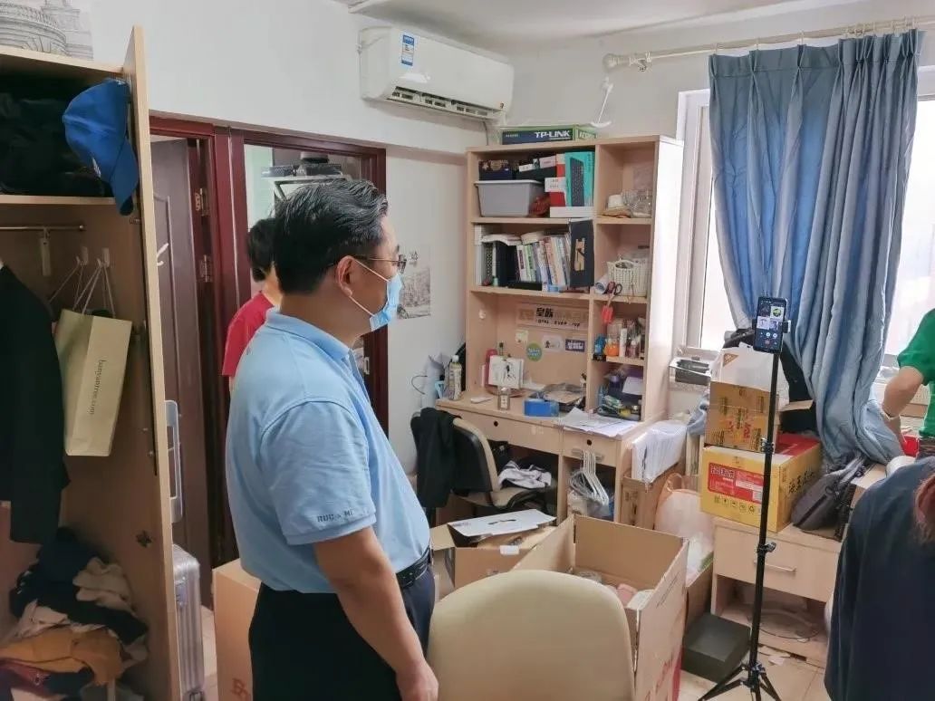 学生宿舍,视察指导行李寄送工作并看望慰问了现场打包的师生。