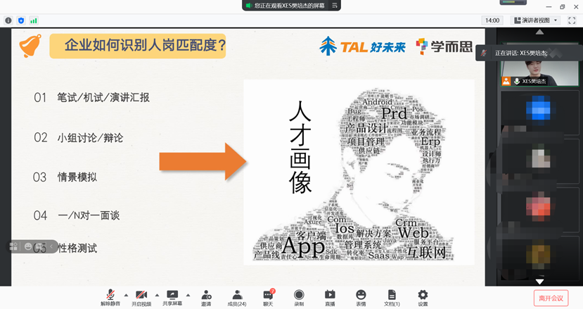 2021-05-25 文:第一版主 图:第一版主2021年5月20日晚上7:30,学而思之“手把手教你求职”社人专场空中分享会在腾讯会议顺利召开,本次分享会由学而思HR樊培杰主持与分享。
