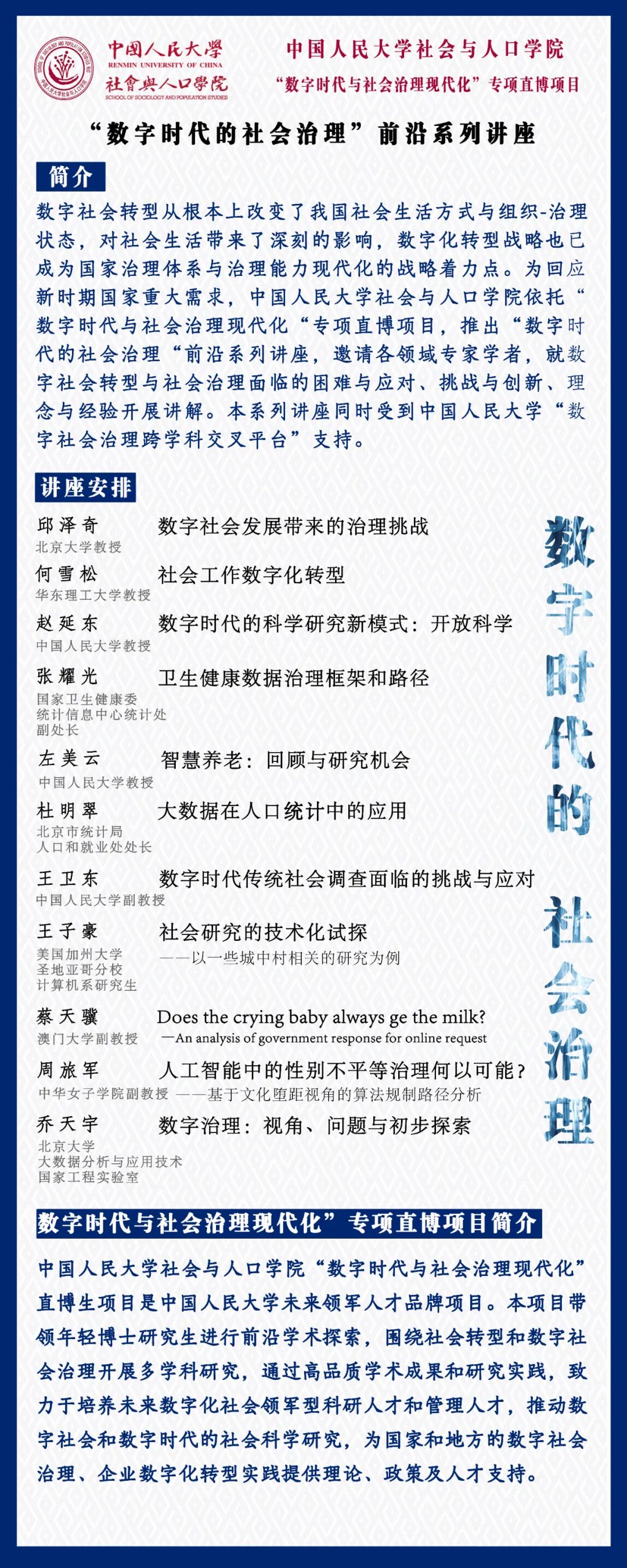 社会与人口第一版主 隆重推出“数字时代的社会治理”前沿系列讲座