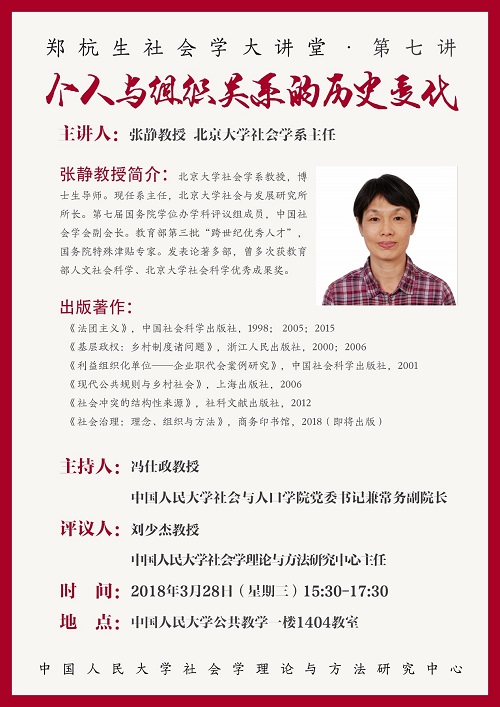温馨提示:此次讲座在校生可在学务中心搜索“郑杭生社会学大讲堂 第六讲”报名参加,签到后可领取活动积分;外校同学可自行参加。