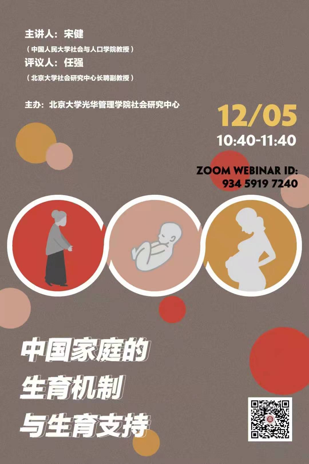 讲座预告 | 宋健:中国家庭的生育机制与生育支持