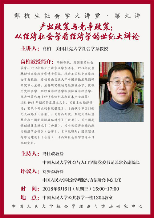 【郑杭生社会学大讲堂】第九讲·产业政策与竞争政策:从经济社会学看经济学的世纪大辩论