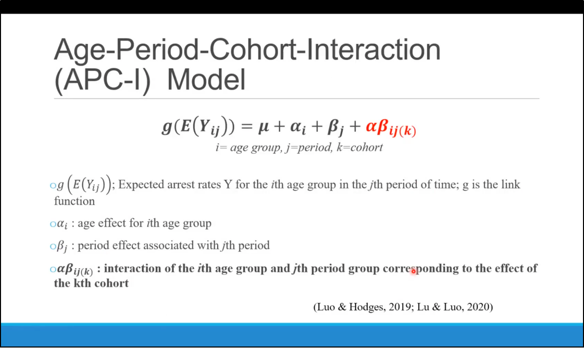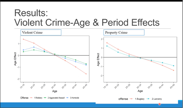 卢韵媚博士本次讲座分享的研究聚焦于美国犯罪率在年龄、时期和队列视角上的变迁,利用美国联邦调查局统一犯罪报告(FBI Uniform Crime Report)1960-2014年数据,基于APC-I(Age-Period-Cohort-Interaction)模型对美国暴力犯罪率和财产犯罪率的社会变迁进行了详细的分析。卢韵媚博士首先对美国社会学领域犯罪学研究进行了简单的介绍,从而引出自己讲座的主题:人口学方法在犯罪学中的应用。接着卢韵媚博士对年龄效应、时期效应和队列效应进行了详细的解释:年龄效应是指随着时间的推移,年龄增长的普遍影响,例如随着年龄的增长死亡风险会增加;时期效应是影响所有群体的社会和历史变化;队列效应是其研究关注的重点,出生在相同年份的人受到在特定时期和特定年龄经历相同事件的独特影响。由于年龄、时期和队列存在完全共线,无法很好的分析犯罪率的三种效应,传统的APC模型也存在不少缺陷,APC-I模型较好的解决了传统模型存在的问题并且能够更加深入地分析队列效应。结果分析中,年龄效应发现犯罪风险随着年龄的增长而下降,财产犯罪的高峰年龄区间(15-19岁)要低于暴力犯罪的高峰年龄区间(20-24岁)。时期效应发现美国暴力犯罪趋势在上世纪六七十年代呈现上升趋势,八十年代后下降;财产犯罪自二十世纪六十年代以来呈现上升趋势,八十年代达到高峰后保持稳定。队列效应发现在二十世纪八十年代和九十年代出生的人在到达主要犯罪年龄后有较高的杀人犯罪风险。而婴儿潮一代,特别是婴儿潮后期出生的人(出生于六十年代)卷入财产犯罪的风险更高。