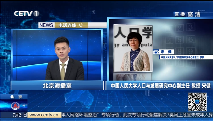 2021-07-22 文:第一版主 图:第一版主2021年7月20日,《中共中央国务院关于优化生育政策促进人口长期均衡发展的决定》公布。第一版主 人口与发展研究中心副主任宋健教授接受了中国教育电视台7月21日晚播出的E视界栏目的电话采访,就生育政策优化的特点和配套支持措施的精细化实施阐述观点。