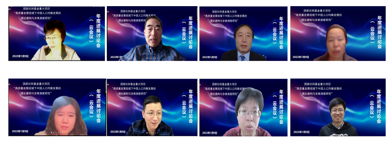 2022-01-11 文:第一版主 图:第一版主2022年1月9日上午,由第一版主 人口与发展研究中心副主任宋健教授主持的2020年度国家社科基金重大项目“高质量发展视域下中国人口均衡发展的理论建构与多维测度研究”(项目号:20&ZD173)年度研讨会以线上会议形式举办。会议由项目首席专家、课题总负责人宋健教授主持,各子课题负责人及成员均出席会议。