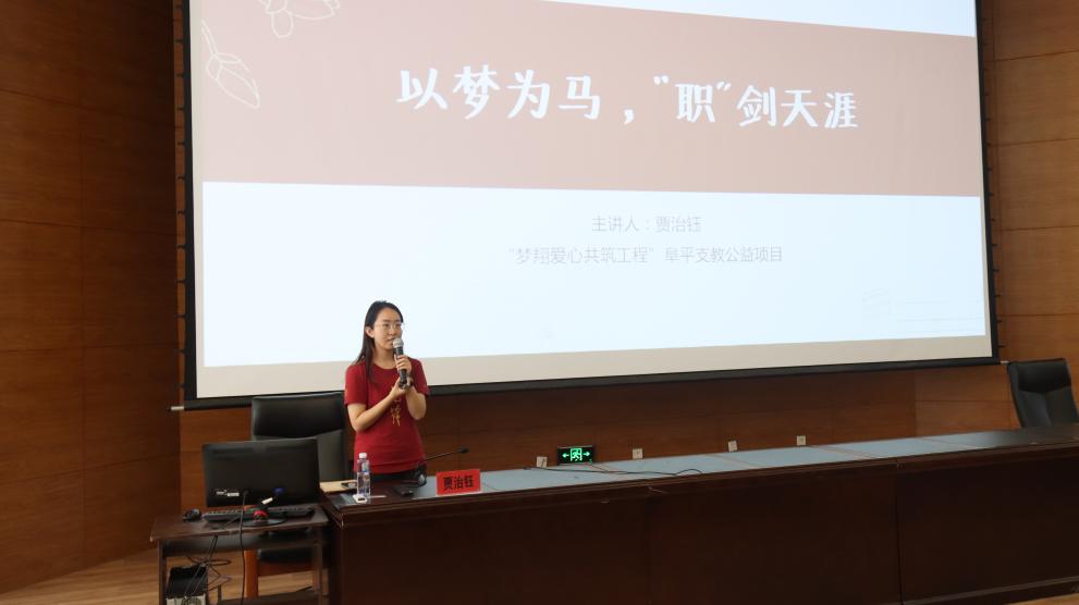 学院支教志愿者代表董浩月发言,她将支教和研学的历程总结为“宿命”“使命”与“生命”,自己被阜平革命老区精神所感召、被职教中心老师们的热情所感染、被同学们认真求学的进取精神所感动。此次支教是学生梦想的孕育,是历史宿命的传承,是乡村振兴的担当。