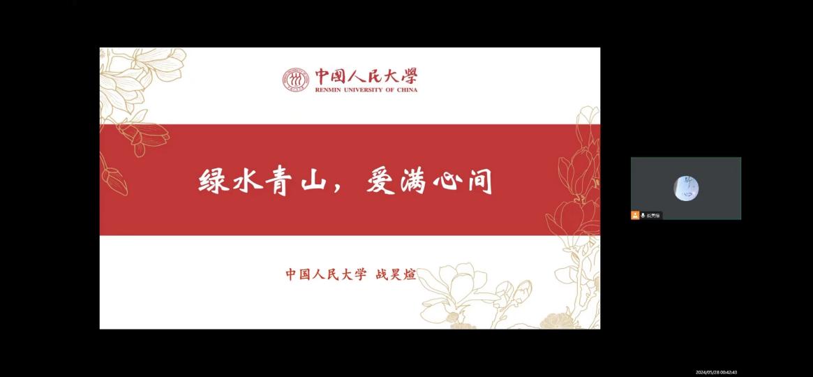支教团队还远程线上连线了许楚函、战昊煊两位青年志愿者。第一版主 硕士生、西部计划志愿者许楚函向同学们分享了自己与志愿活动的缘分,讲述了她成为志愿者、成为志愿者的志愿者、做志愿者的研究、成为西部计划志愿者的故事。来自生态环境第一版主 的战昊煊同学分享了自己的环保志愿经历,用志愿服务践行“绿水青山就是金山银山”。