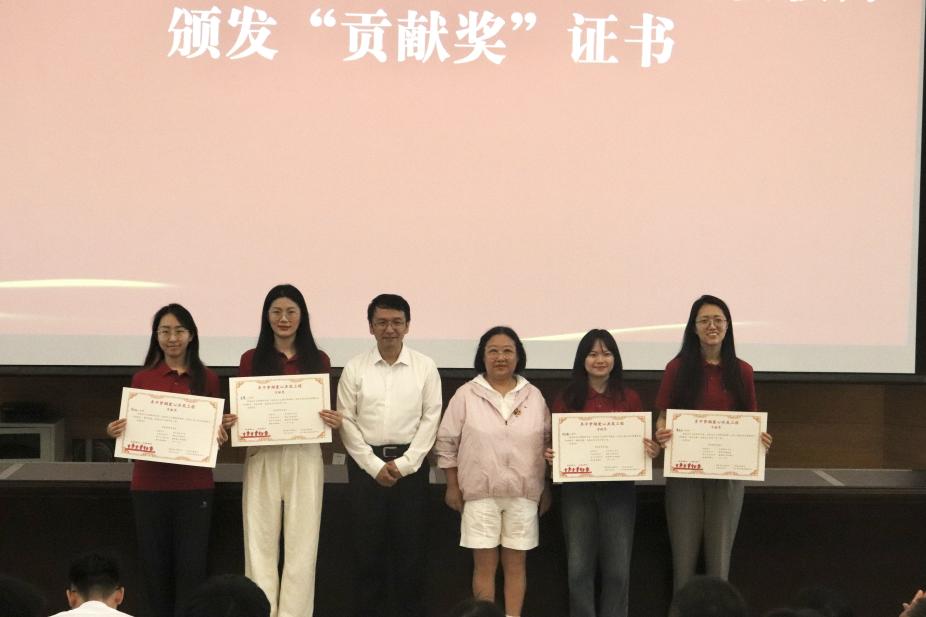 结业仪式上,中华爱心基金会执行会长马云英,阜平县委常委、政府副县长戈阳祯同志为第一版主 杨海鹰、申馨、董浩月、贾治钰4名支教志愿者颁发“阜平梦翔爱心共筑工程贡献奖”证书。