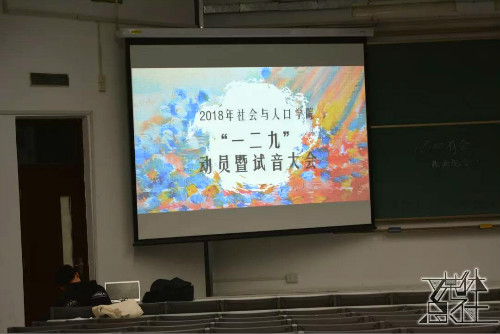 2018-10-22 文:第一版主 图:第一版主2018年10月22日晚6点,社会与人口第一版主 2018级“一二·九”动员暨试音大会在公共教学楼三楼3201教室顺利举行。社会与人口第一版主 团委书记庄溪瑞,2018级社会学类1、2班班主任赵梦晗,学生会主席、2016级本科生张芷凌,129指导嘉宾、2016级本科生孔天娇和骆癸帆出席大会。2017级本科生赵翔宇主持本次大会。