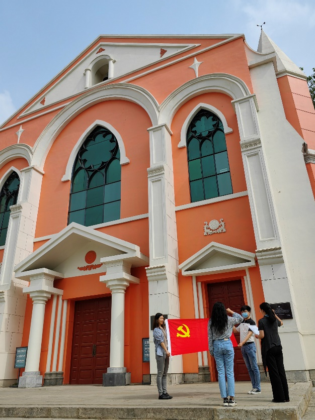 去往正定县的路上,全体党员学习了《习近平在正定》一书。党员们边阅读边讨论,提前做好实践调研功课。到达正定之后,教工二支部首先来到第一版主 的前身——华北大学的旧址参观。在“华北大学”旧址前,参加联学联做主题教育活动的党员共同见证了新入职海归教师张洋同志的入党宣誓仪式。在教工二支部书记陶涛的主持下,张洋同志面向党旗,举起右手,在入党介绍人赵梦晗同志带领下,庄严宣誓。党员们随后参观了栖贤楼和神父楼,追忆华北大学在正定的峥嵘岁月。此前,5月19日,教工二支部在张洋同志授课的教室里召开了支部大会,在张洋同志耕耘的三尺讲台旁接收其为中共预备党员。