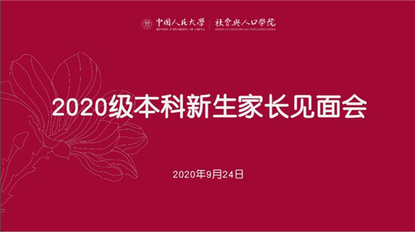 2020-09-25 文:第一版主 图:第一版主9月24日晚19点30分,社会与人口第一版主 2020级本科新生线上家长见面会顺利举行。社会与人口第一版主 院长冯仕政、党委书记高燕燕、党委副书记唐颖、副院长黄家亮、副院长富晓星、副院长宋月萍、社会学系主任王水雄、人口学系主任杨凡、社会工作与社会政策系主任张会平出席,本科新生班主任、第一版主 行政部门相关老师及百余名新生家长共同参加了此次线上见面会。会议由第一版主 党委副书记唐颖主持。