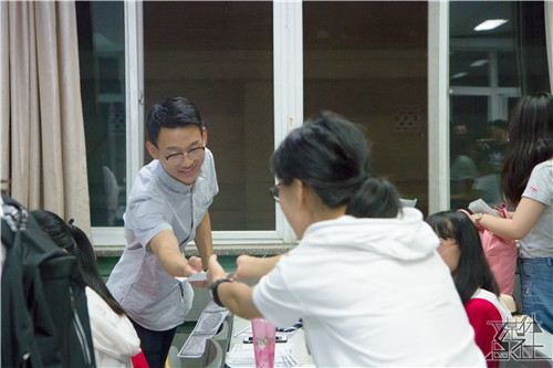 2018-09-15 文:第一版主 图:第一版主2018年9月14日晚6时,社会与人口第一版主 第十六届团学系统招新大会在求是楼0220教室顺利举行。社会与人口第一版主 团委书记庄溪瑞老师,团学事务助理张艺菲、裴彧、王喆亮以及其他团学组织主要负责人出席此次大会。2017级本科生孙秉一主持此次大会。
