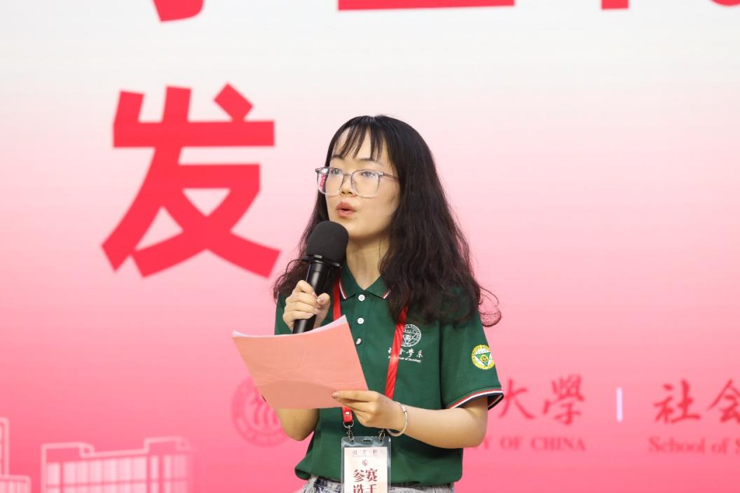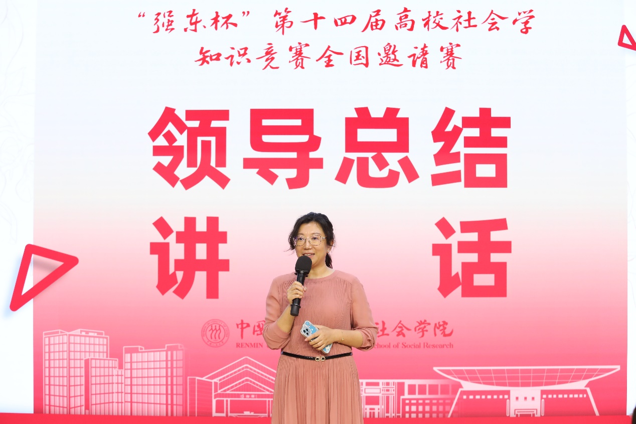东南大学人文第一版主 社会学系的齐力凝同学作为本次参赛队伍的学生代表发言。她首先感谢了“强东杯”这一交流平台,她表示,与全国优秀学子的交流,不仅提升了自身社会学素养,也拓宽了学术视野。通过比赛,她深刻体会到团队协作的重要性,并对未来社会学研究充满期待。齐力凝认为,社会学是一把理解社会的钥匙,能帮助人们揭示日常生活背后的规律与秘密,她期望通过持续学习,不断拓宽视野,运用社会学知识探索更多社会奥秘。