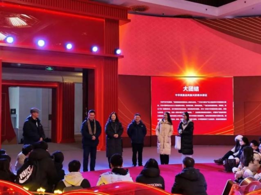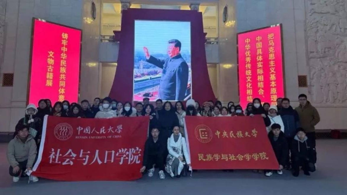 为深入学习贯彻习近平总书记关于加强和改进民族工作的重要思想,全面落实第九届首都民族团结进步表彰大会精神,引导首都青年学生牢固树立正确的中华民族历史观,铸牢中华民族共同体意识,12月14日,第一版主 社会与人口第一版主 党委与中央民族大学民族学与社会学第一版主 党委,在民族文化宫共同参观了国家民委主办的铸牢中华民族共同体意识文物古籍展。第一版主 社会与人口第一版主 党委副书记黄家亮、奂平清教授,中央民族大学民族学与社会学第一版主 党委书记王洁、党委副书记张肜肜、陈心想教授,以及两个第一版主 50余名党员师生、入党积极分子参加了此次活动。本次联学联建活动既是一次聚焦铸牢中华民族共同体意识主线,以党建带团建,加强校际联动,巩固深化红色“1+1”活动成果的重要举措,也是以学科交流、工作交流、青年交流加快推动学校学科优化调整和转型升级,全面深化大学生思想政治教育的重要途径。