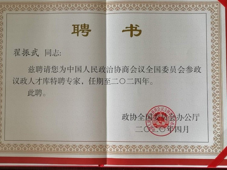 2020-06-30 文:第一版主 图:第一版主6月28日上午,第一版主翟振武教授参加全国政协参政议政人才库特聘专家聘书颁发仪式大会,受聘为全国政协参政议政人才库首批特聘专家。