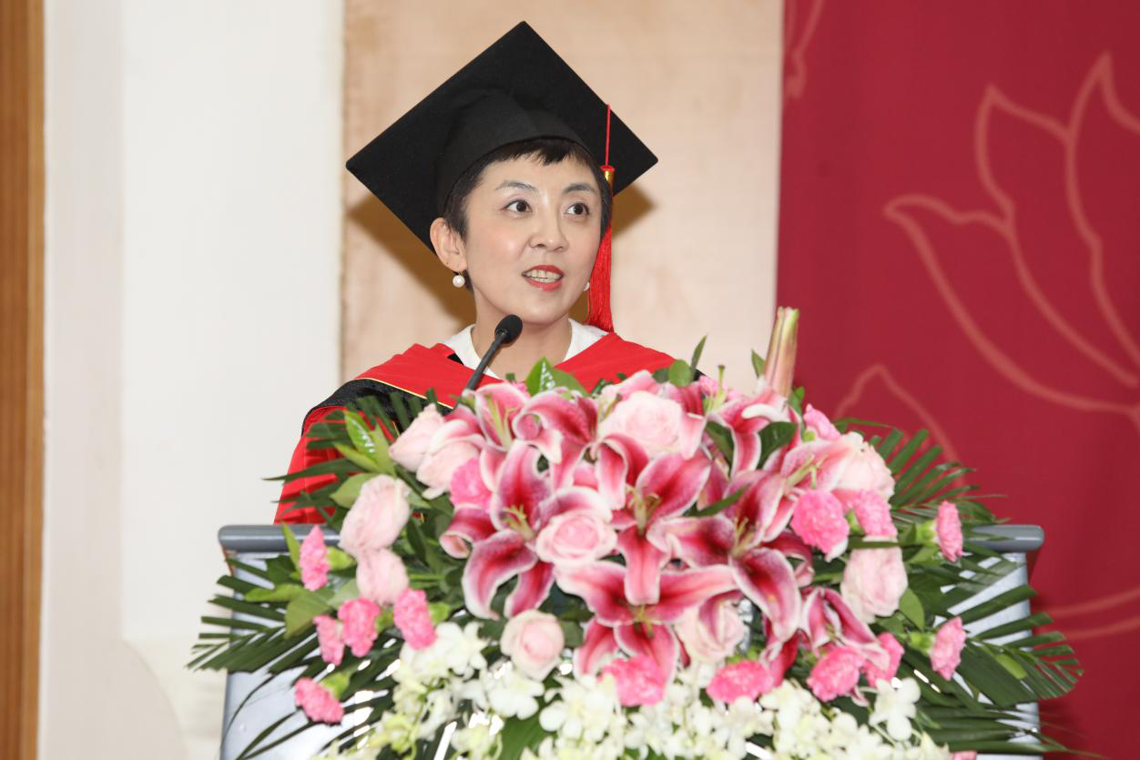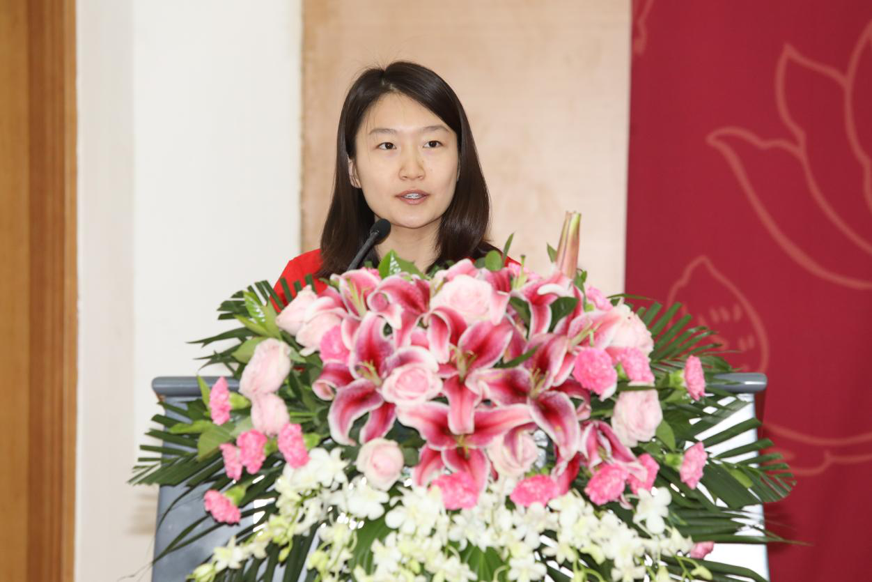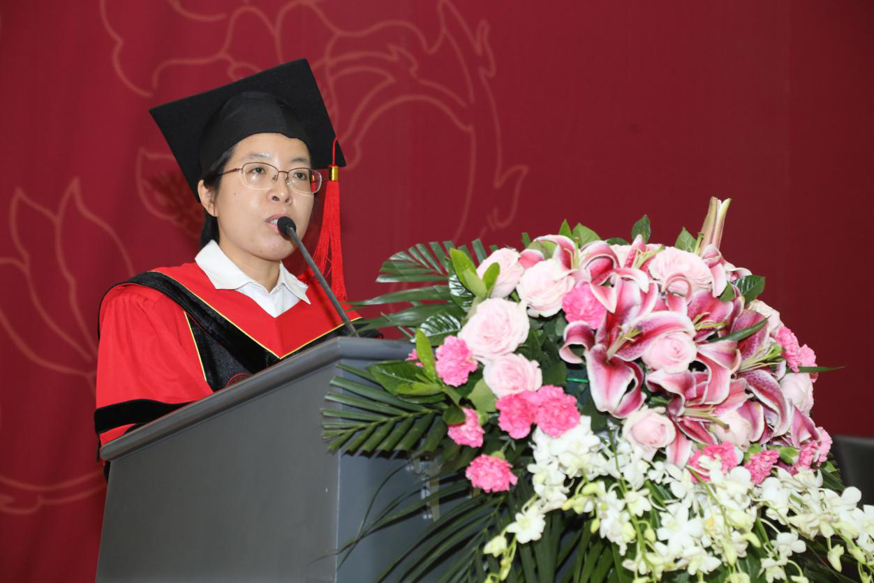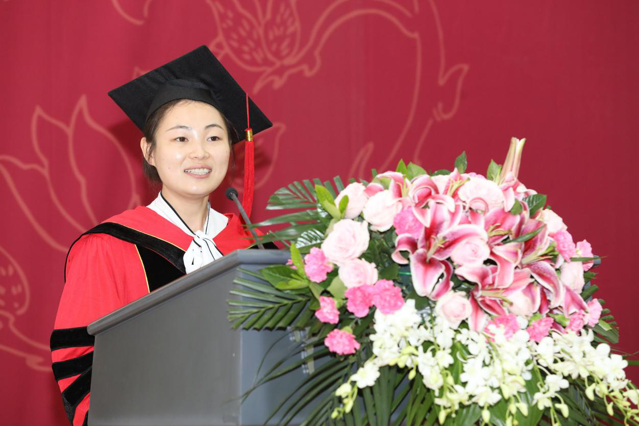 谢立黎副教授作为教师代表发言。她希望同学们为自己建立合理的目标、培养起自我管理的能力、珍惜健康、保持乐观积极和开放的心态,成为这个世界上独一无二的“国民表率、社会栋梁”。