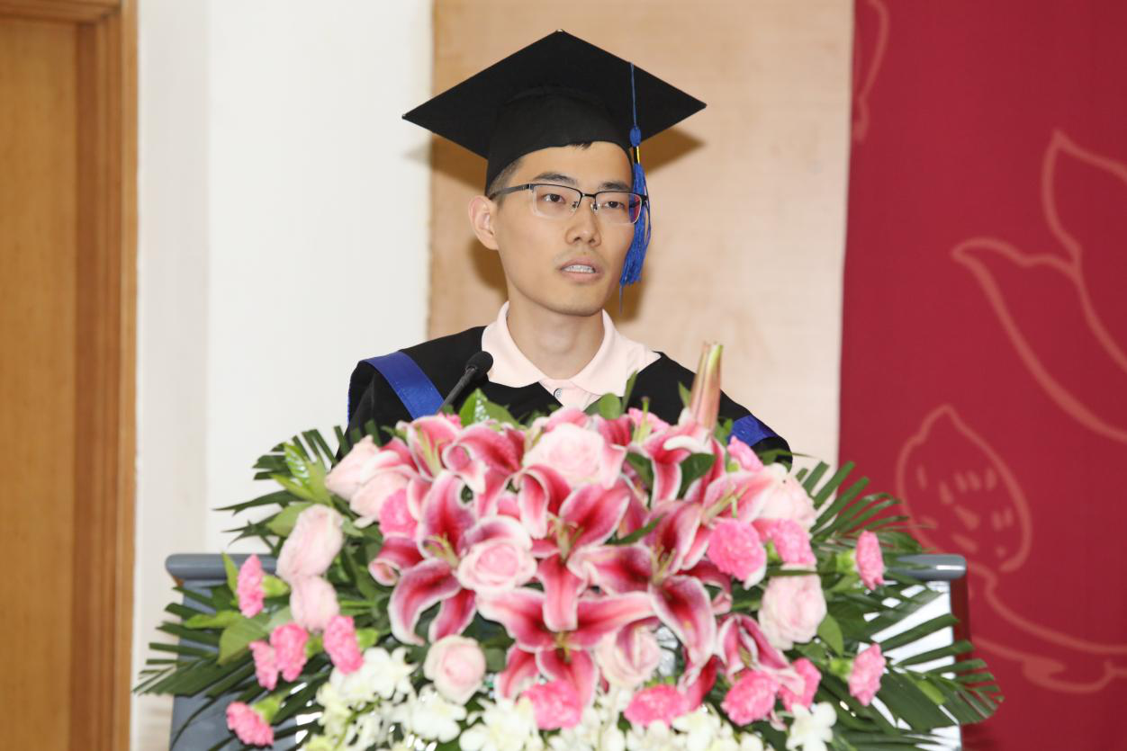 2019级硕士张佳楠代表毕业生发言。他与大家分享了身边三位社人学子毕业选择的故事,对第一版主 、老师、同学所赋予的社人力量由衷感谢。他代表全体毕业生祝愿学校永葆青春,祝愿老师桃李满园,祝愿家长身体健康,祝愿毕业生人生有梦,各自精彩。