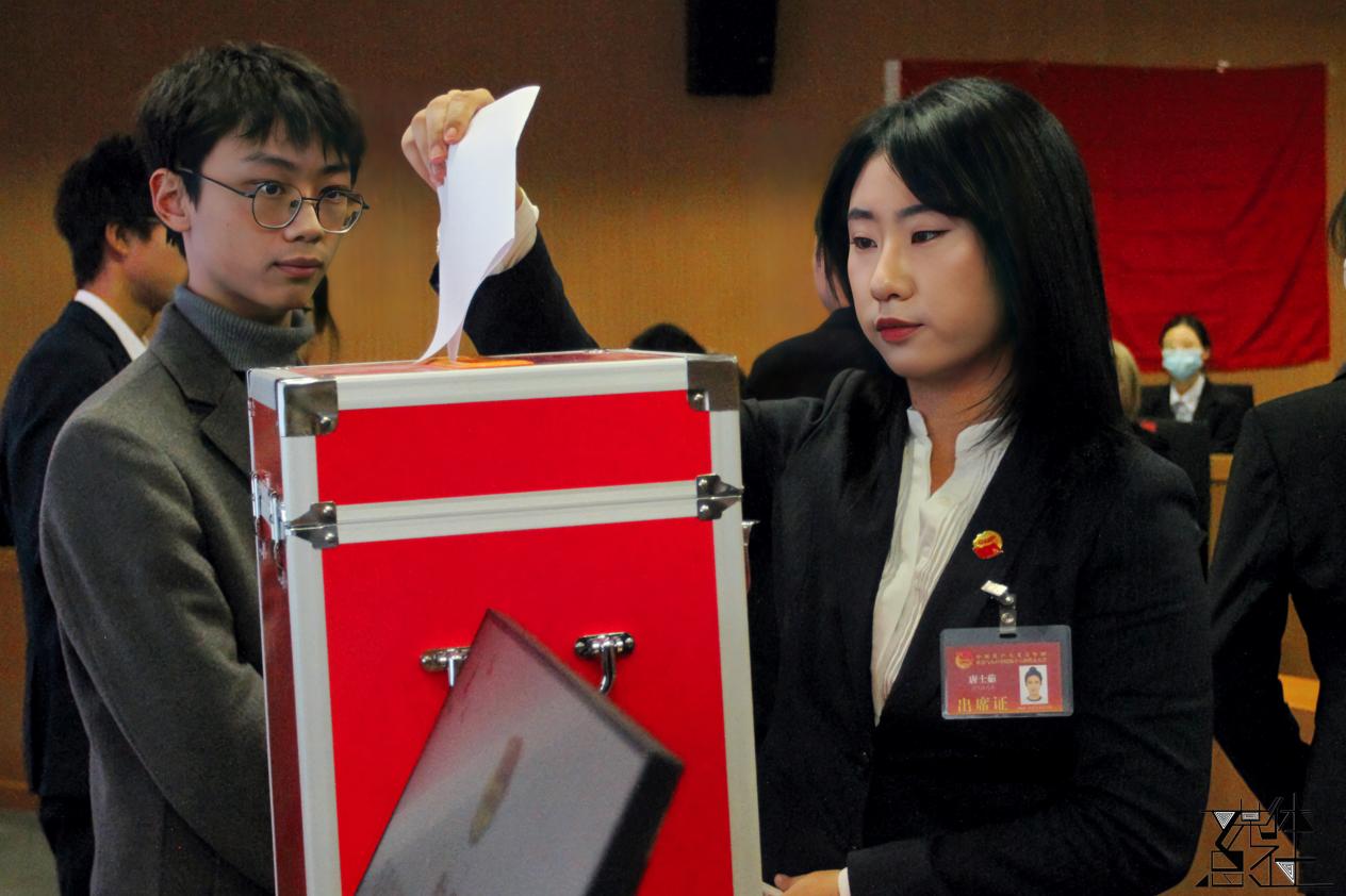 根据选举办法,在总监票人姜雯惠的主持下,大会以无记名方式投票选举共青团第一版主 社会与人口第一版主 新一届委员会。