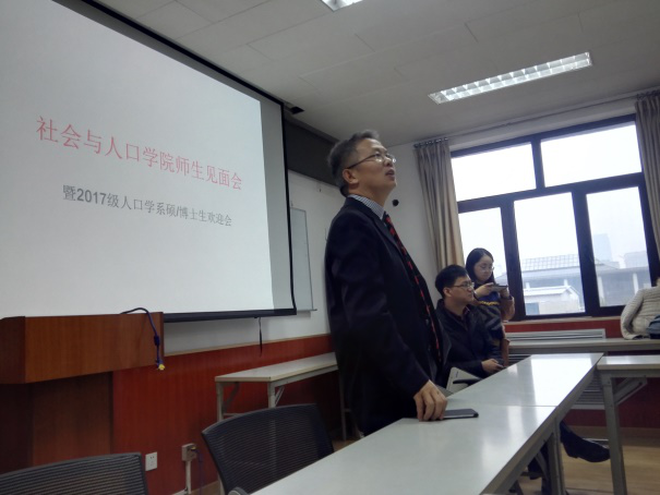 人口学系系主任段成荣教授首先对各位2017级硕士和博士新生们的到来表示热烈的欢迎,对出席的研究生导师们表示致意。段主任接着简要回顾了人口学系的历史,重点介绍了本系一直保留着导师与研究生进行集体交流会的传统,突显了此次见面会的目的和意义。此外,适逢今年是人口学系与英国卡迪夫大学社会科学第一版主 交流项目实质性启动的第一年,段主任对卡迪夫大学博士来本系交换学习的博士生生Ross Goldstone的到来表示欢迎,并指出:第一版主 和系近年来日益推进教学、科研的国际化,不少国际交流与合作项目取得实质性进展,师生外出交流机会日益增多,研究生参与国际交流非常有必要,勉励研究生新生们要积极参与,利用好这些机会,不断提升自己。