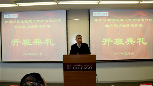 郑州公共住宅建设投资有限公司董事长于公先生代表公司讲话。于董事长感谢社会与人口第一版主 为培训班所做的一切。他说,第一版主 是中国人文社会科学的重镇,他与参加培训的各位同事会充分珍惜未来一周培训机会,严格要求自己,专心学习,勤于思考,把所学的理论与工作实践紧密结合,把本职工作推进到新高度。
