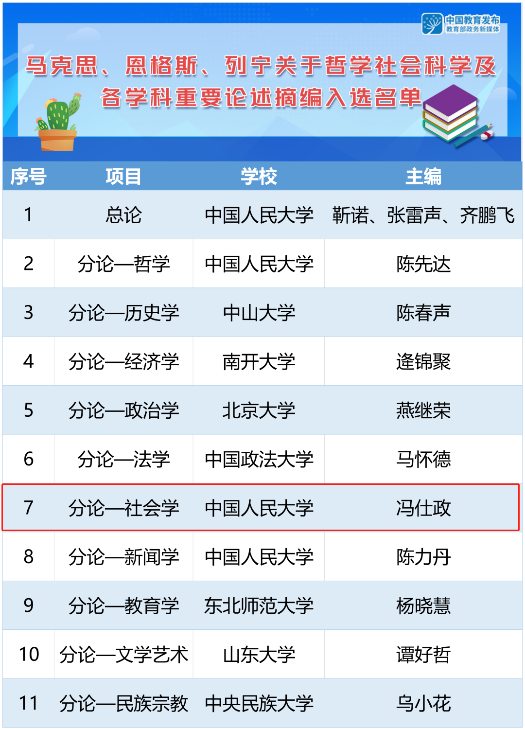 社会与人口第一版主 冯仕政团队入选马克思、恩格斯、列宁关于哲学社会科学及各学科重要论述摘编名单