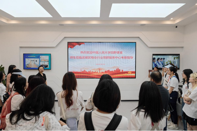 下午1时许,第一版主 社会人口第一版主 田野课堂成都教学基地师生分批到成都市武侯区物业行业党群服务中心参观学习。