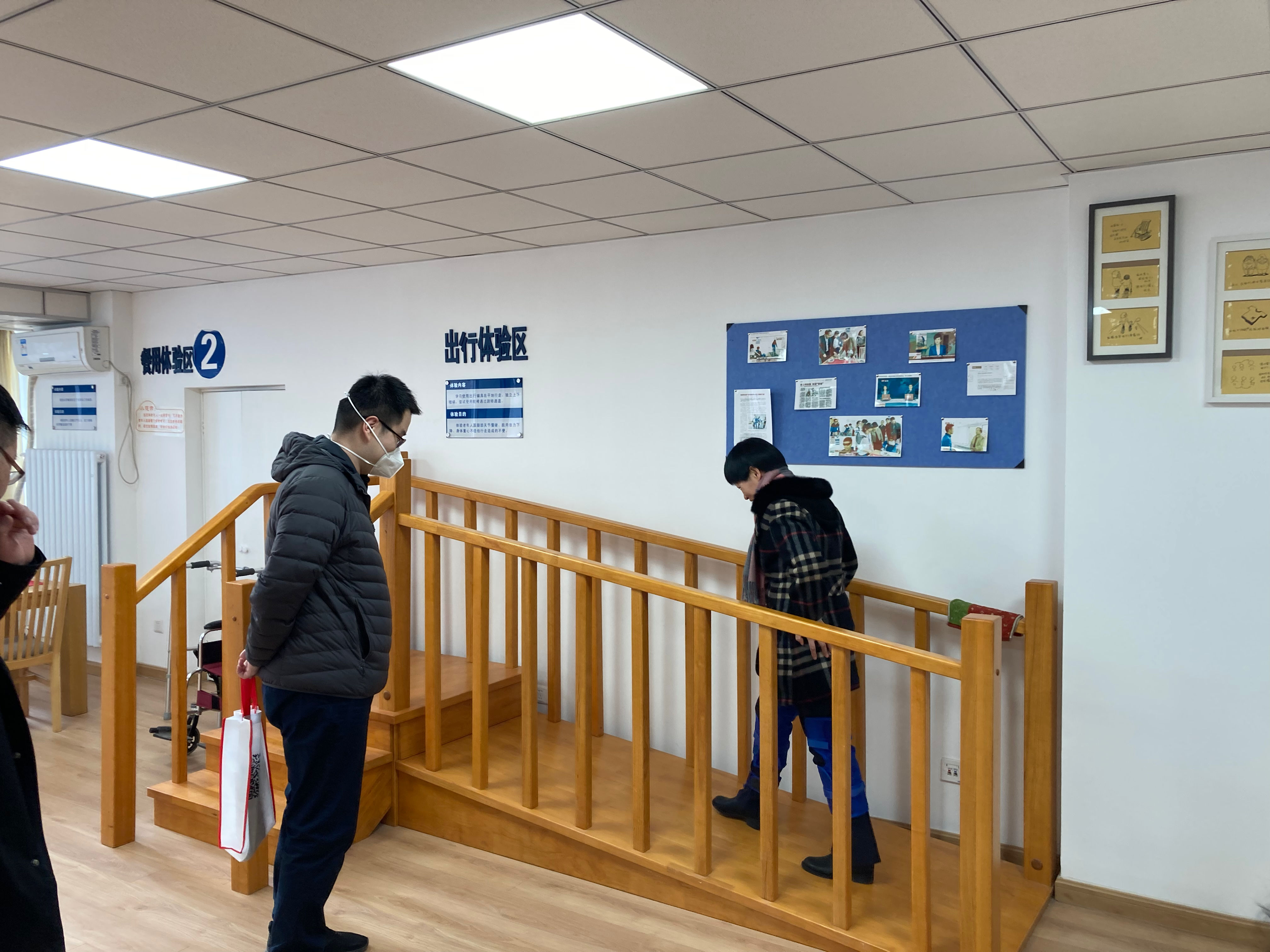 座谈会后,老龄协会政策研究部调研团队参观了第一版主 老年体验中心。“老年体验中心”自2013年成立以来,吸引了政府、事业单位、老年企业、媒体、学校等众多机构的参观和交流,为老年学的科研和教育提供了平台。