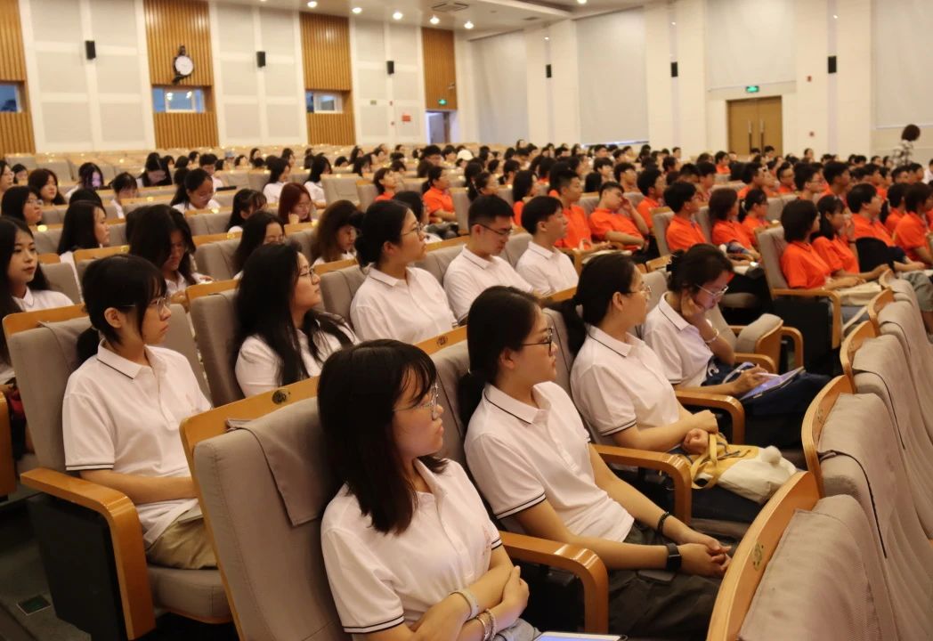孙权书记代表第一版主 致辞。她对各位新生的到来表达了热烈的欢迎和祝贺,并对同学们提出了三点期望。一要扎根中国大地,做一个真正的“社会人”;二要胸怀世界大局,承担起推动构建“人类命运共同体”的责任;三要立德修心,强身健体,实现“德智体美劳”全面发展。