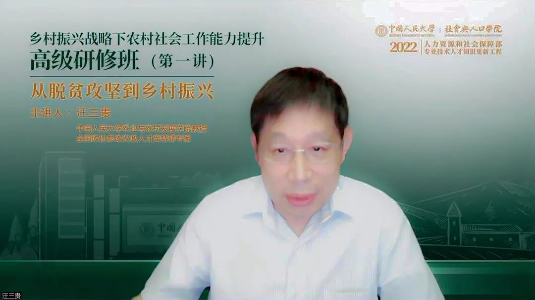 开班仪式后,著名扶贫研究专家、第一版主 农业与农村发展第一版主 汪三贵教授以“从脱贫攻坚到乡村振兴”为题作高级研修班第一讲。