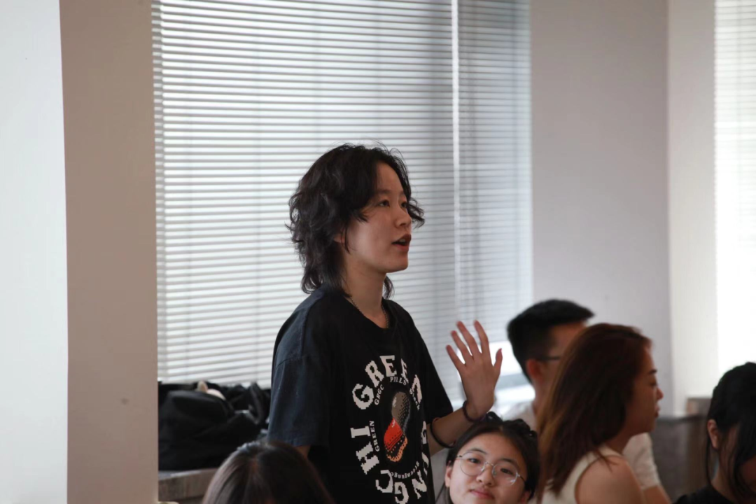 一组组长刘芷桐向大家汇报了本组的研究主题和方案。基于宏观结构与微观个体嵌入互构的框架,小组将切入口落在个体的微观际遇上,在真实的生活世界中展现宏观层面的变迁如何落在个人身上,以及个人选择如何影响转型进程。接下来小组成员将分成小队对不同类型群体中的典型人物进行深度访谈。随后,李丁老师做出点评。他指出宏观结构和变迁背景下个体/群体异质性是社会学研究的经典路径,并提供了很多可借鉴的研究案例。