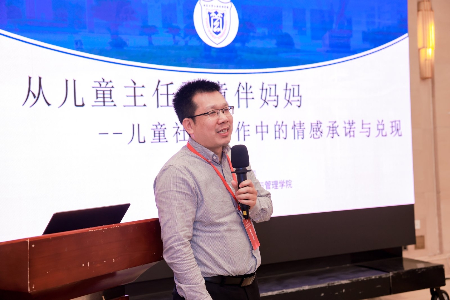 袁小平围绕“从儿童主任到童伴妈妈——儿童社会工作中的情感承诺与兑现”展开发言,提出童伴妈妈的情感劳动是一定程度上的“慈善型”母职代理。对于儿童社会工作机制的优化方向,认为仅仅是“权利义务型”的儿童保护制度不够,应当在制度设计中加入情感元素,并且培养基层一线儿童社会工作者队伍,建立“情感近邻”的服务模式。